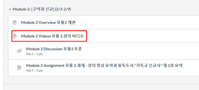 For example, click on “Module 2 Videos” (Titles may vary depending on the lecture)