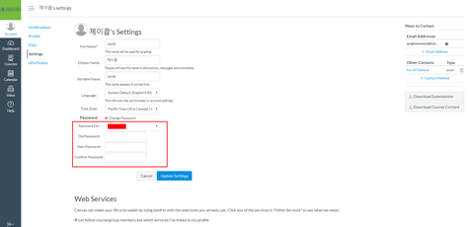 Enter the current password in “Old password” and use your own password in "New Password" and "Confirm Password" Then click “Update Settings”